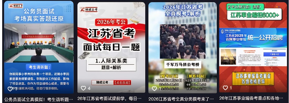 云齐邦团队,在充分把握抖音平台传播规律与用户观看习惯的基础上,凭借专业的视频剪辑能力和对公考行业运营的深刻理解,为臻成公考打造出高效传播的视频内容,助力其更好地触达目标用户,提升运营效果。