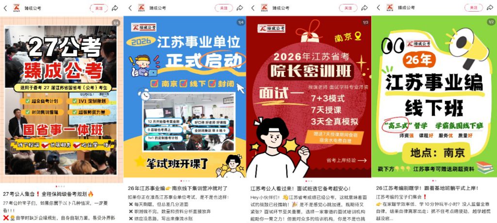 在小红书内容创作方面,云齐邦团队深入挖掘臻成公考的特色与独特优势,广泛搜集并整理相关公考等素材,结合公考行业的热点趋势、政策动态及用户核心需求,创作了一系列富有创意和吸引力的图文内容。