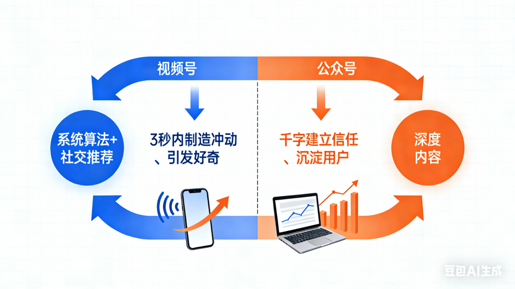 了解两个平台的本质后,我们的战略战术也就有了:用视频号的“快”,为公众号的“慢”引流;用公众号的“深”,为视频号的“浅”赋能,导流。