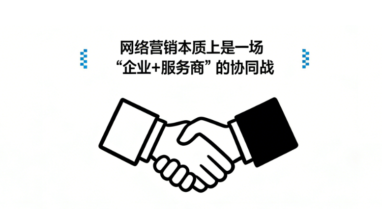 深挖原因:网络营销本质上是一场 “企业+服务商”的协同战,不是单方面的“外包交付”。服务商懂营销、懂平台规则,但最懂产品、最懂客户的永远是企业和老板自己。如果企业把自己“摘出去”,效果必然大打折扣。