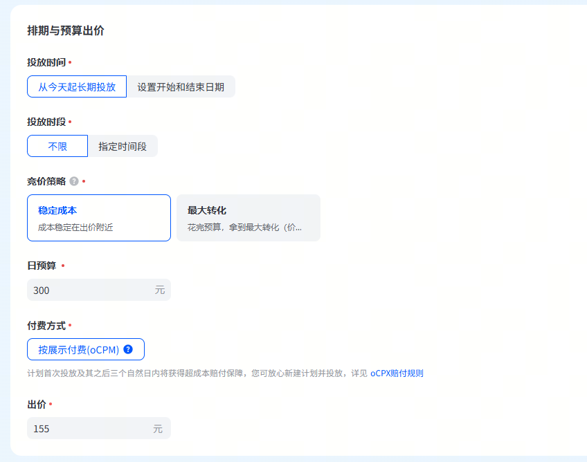 一个小技巧:如果稳定成本模式下消耗太慢,切换到“最大转化”模式,系统会帮你争取更多转化,预算不变。
