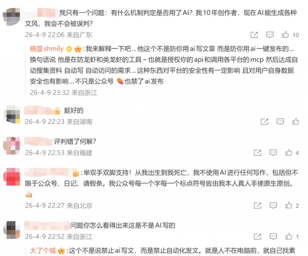 此次整治并非突然袭击。早在3月27日,微信就已更新《微信公众平台运营规范》,明确禁止公众号/服务号使用AI、脚本、接口等工具“代替真人写文章、发内容”。此次批量删文,正是平台依据新规对违规行为的集中处理。