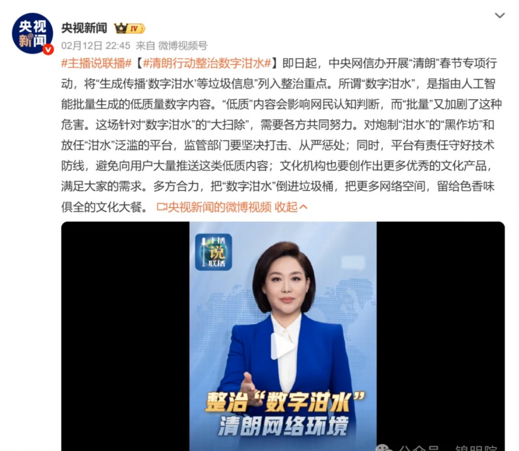 平台集体行动的背后,是“数字泔水”的泛滥——AI批量生成的低质内容(纯营销软文、逻辑混乱、剧情雷同、纯凑数)正污染网络环境,甚至形成“AI垃圾训练AI垃圾”的恶性循环。今年年初中央网信办“清朗行动”已将“生成传播数字泔水”列为整治重点,监管与平台的双重发力已成定局。