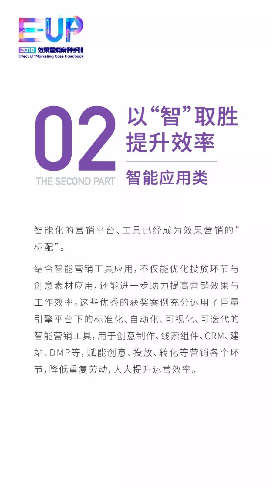 2019年1月28日,今日头条联合金鼠标数字营销大赛共同发布了《2018效果营销案例手册》,对“2018E-UP效果营销案例大赛”获奖案例进行了全面系统的梳理,精细化呈现不同营销代理公司及广告主为实现品牌投资回报有效增长,从人群洞察、策略制定、智能投放,到效果评估贯穿效果营销全链路的创新实践与探索。